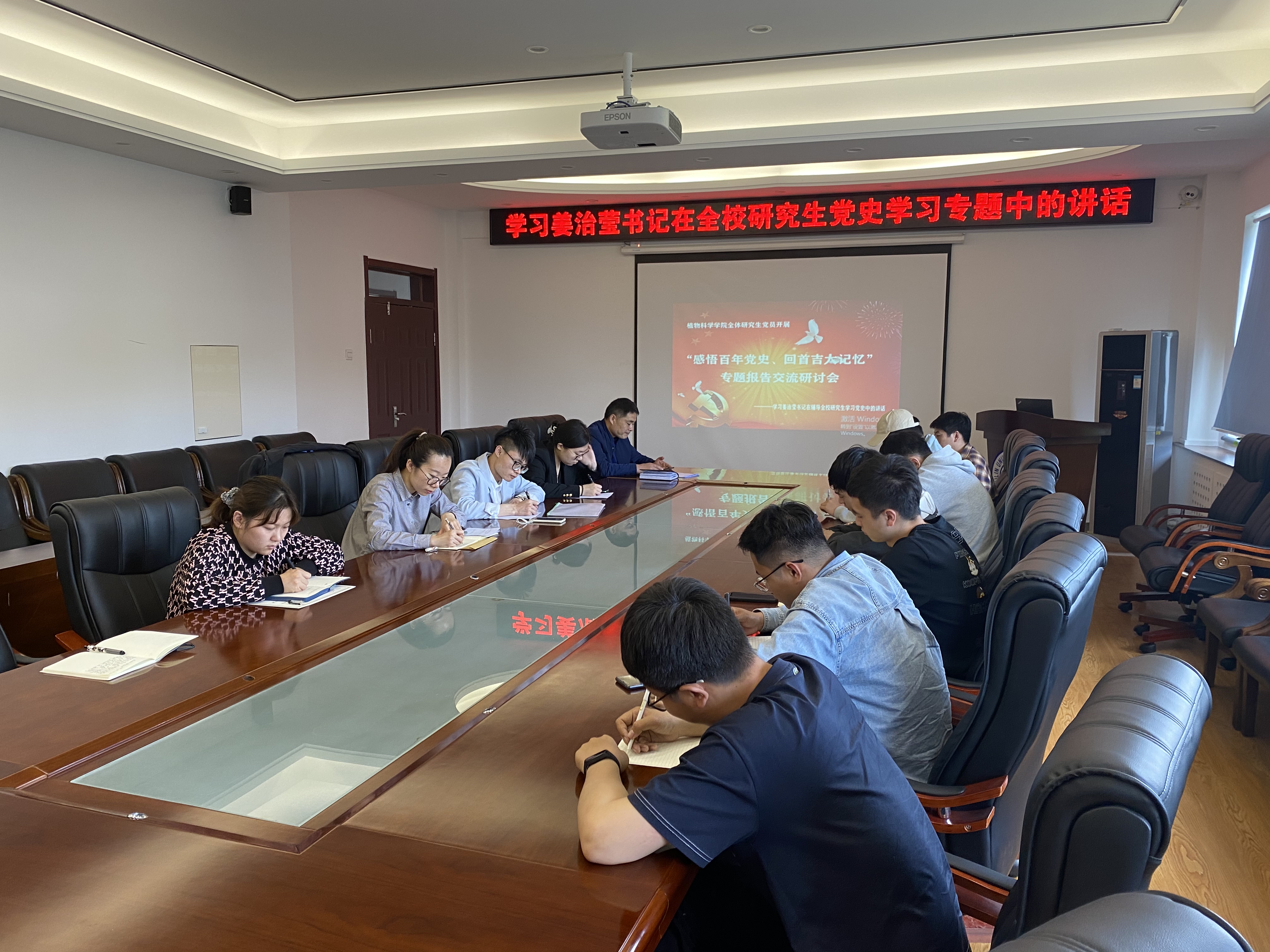 为迎接中国共产党成立100周年,落实党中央关于在全党开展党史学习教育的工作部署,让广大研究生更好地学党史、知校史,更深入了解公司先贤与党同心、与国同行的故事,贯彻落实校研究生工作部召开的“感悟百年党史 回首吉大记忆”研究生党史学习教育专题活动精神,太阳集团tyc33455于2021年6月3日下午14:00,在公司四楼会议室召开了“感悟百年党史、回首吉大记忆”专题报告交流研讨会,学院研究生辅导员邓松、研究生党员代表和研究生干部代表等人出席了会议。