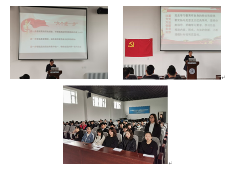 本科生党支部书记姚彬同志于4月2日做“为什么学、怎么学、学什么”主题党课。支部书记姚彬同志从“三个必然要求” “六个进一步”和“四个方面要求”等三方面详细讲述了开展党史学习的内容和意义。她要求全体党员要统一思想认识,坚定学党史的决心,以理论联系实际的马克思主义学风,做到学史明理、学史增信、学史崇德、学史力行。不忘初心、牢记使命,不负党和人民重托,建设党和国家做出更大的贡献!