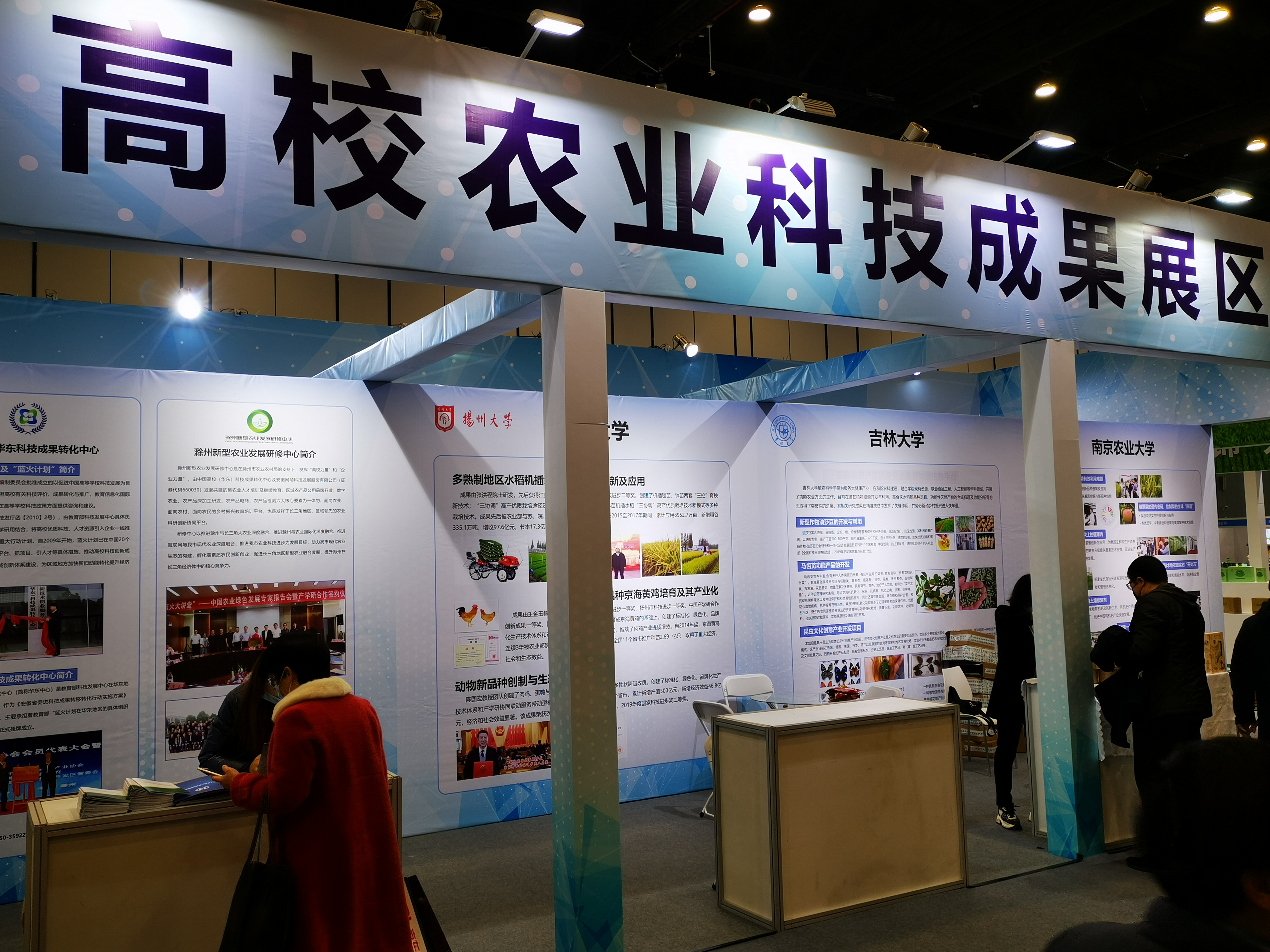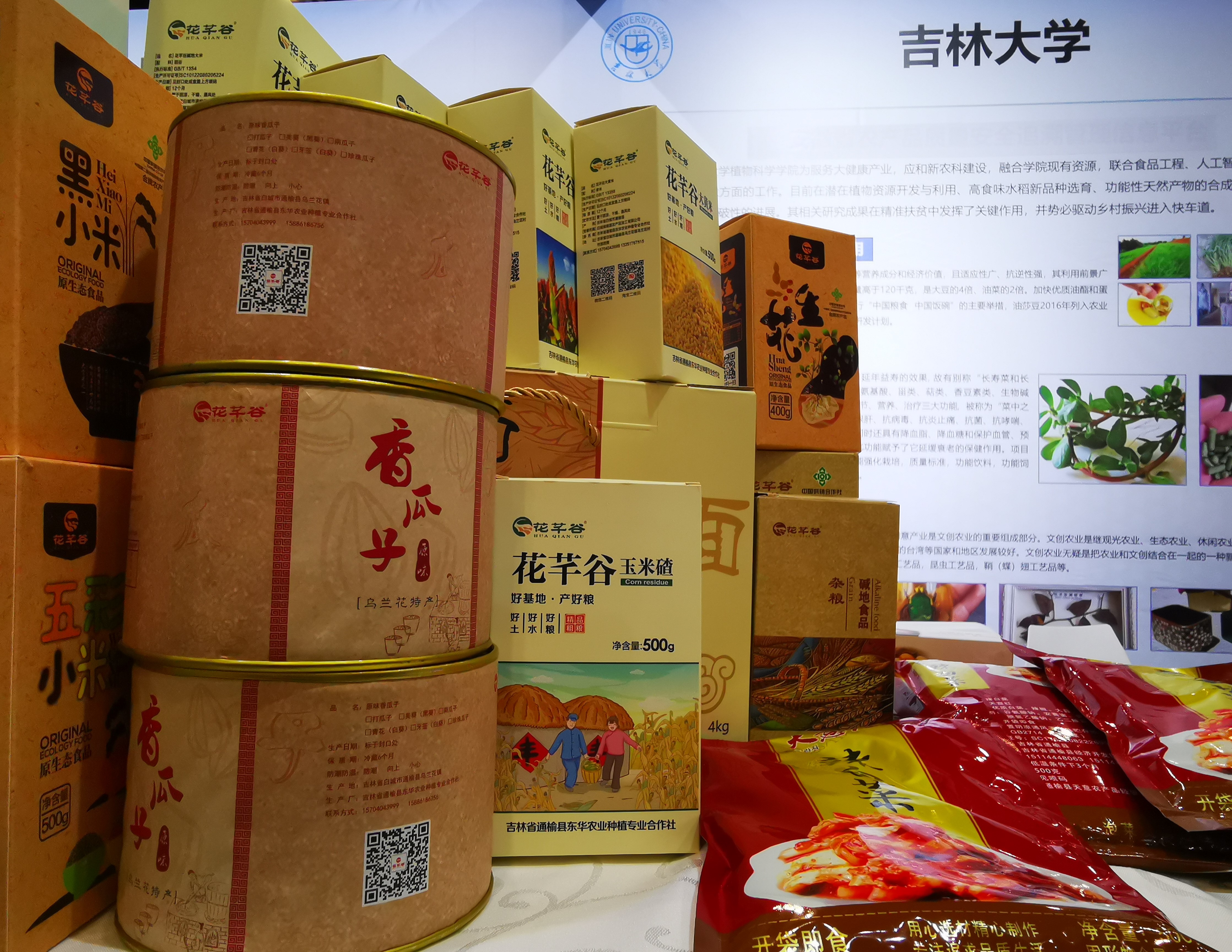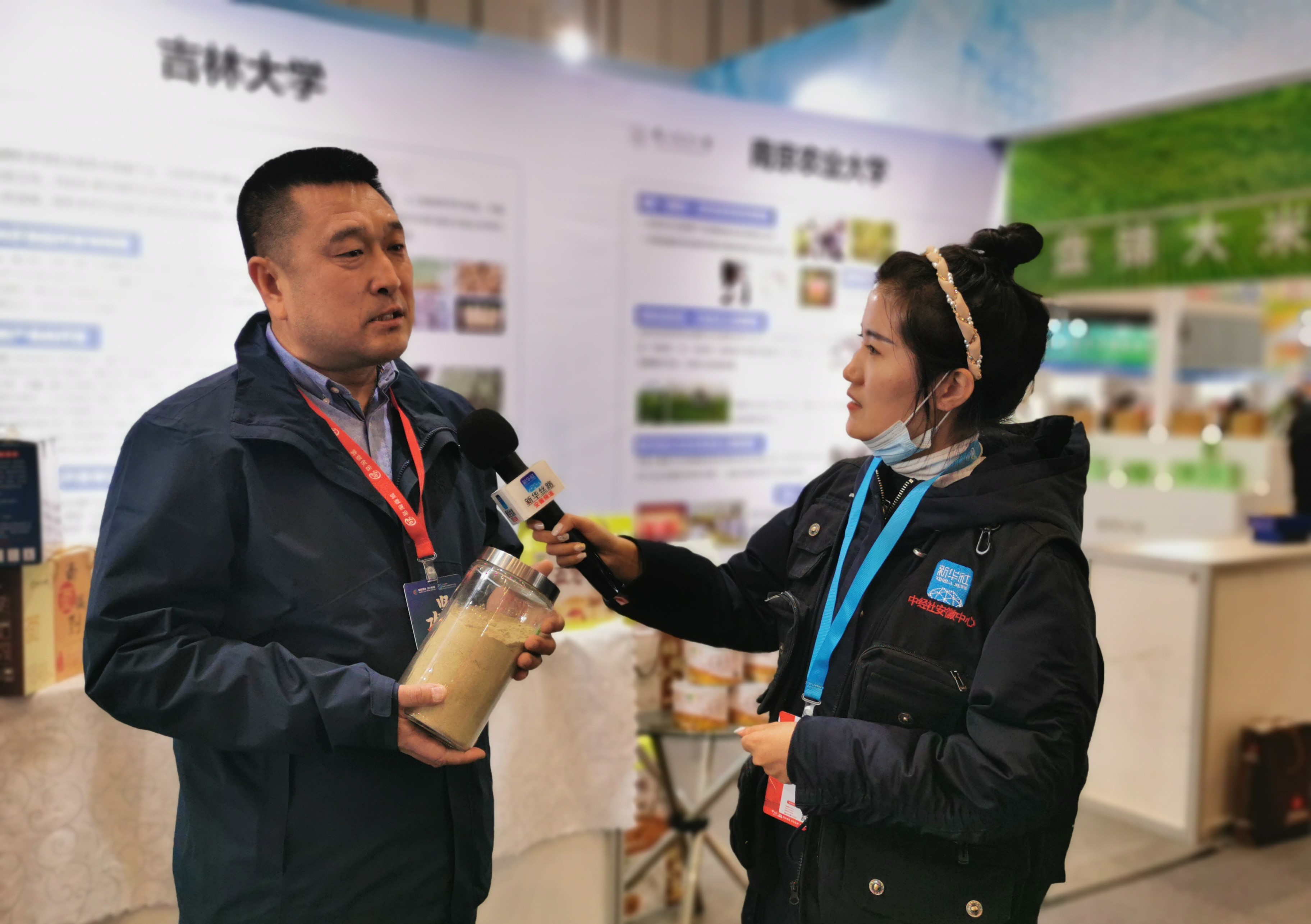 在高校农业科技成果展区,来自于南京农业大学、扬州大学、西北农林大学、东北农业大学、太阳集团tyc33455等高校展示了科技成果及产品,公司展示了国审水稻、玉米品种、新型作物油莎豆开发与利用、马齿苋功能产品开发和藤茶功能产品的开发等科研成果及功能农产品项目,并集中展出了太阳集团tyc33455功能农业基地(通榆)的扶贫产品。新华社记者采访了太阳集团tyc33455植物公司副经理韩俊友教授和吉林通榆经济开发区党工委书记李开福。韩俊友教授介绍了一款由太阳集团tyc33455功能农业团队研发的,30余种粮食(含药食同源植物)为主的。适用亚健康人群的天然、无添加的功能农产品。李开福书记介绍了通榆的自然环境条件、重点推介了来自家乡的优质功能农特产品,并表示在太阳集团tyc33455的定点扶贫工作中,功能农业团队充分挖掘了通榆的自然资源和农业生产特点,仅仅围绕大健康人群的需求,提高了当地农产品的附加值,使农户们增收脱贫,受益良多,对太阳集团tyc33455表示感谢。