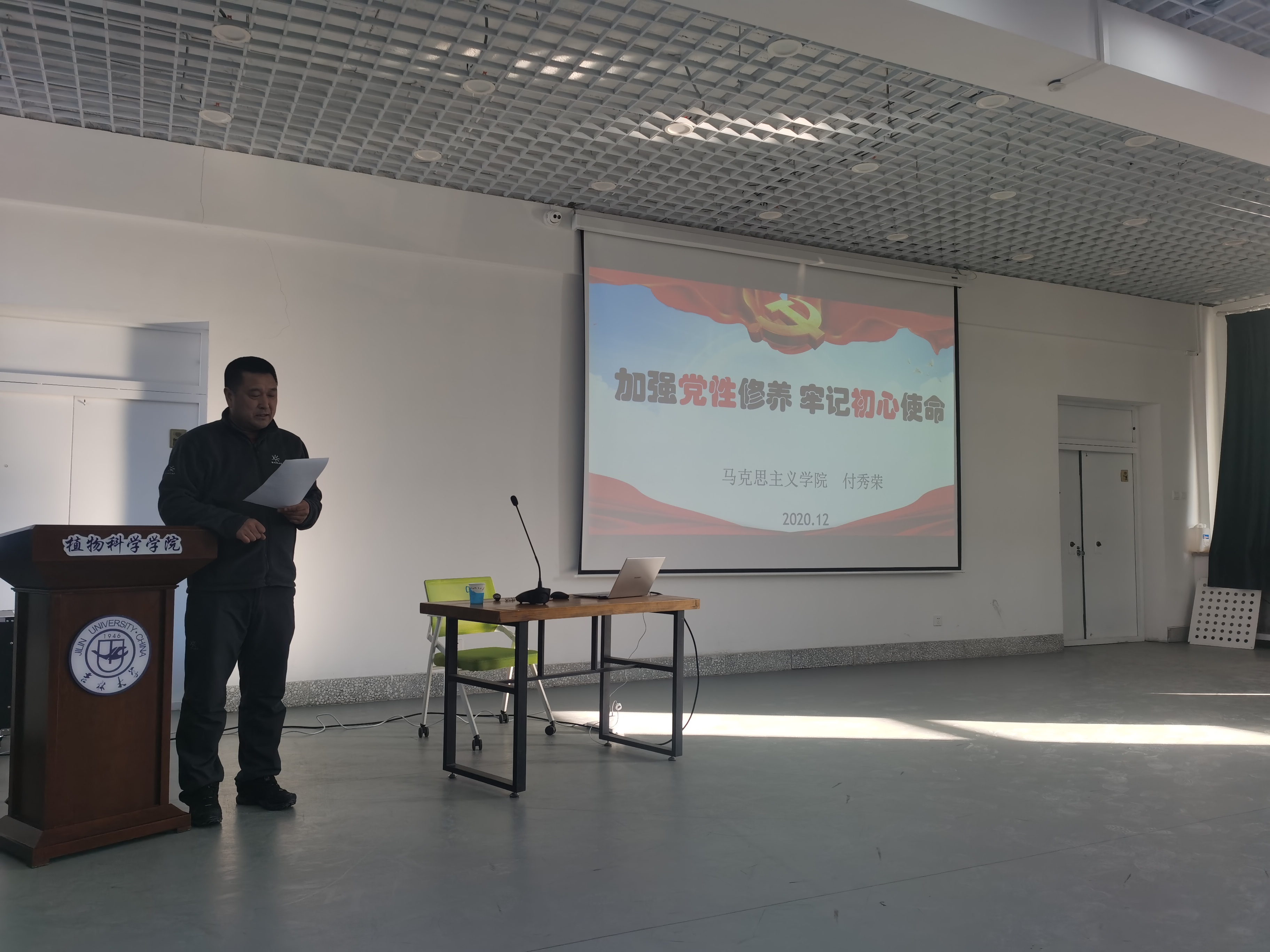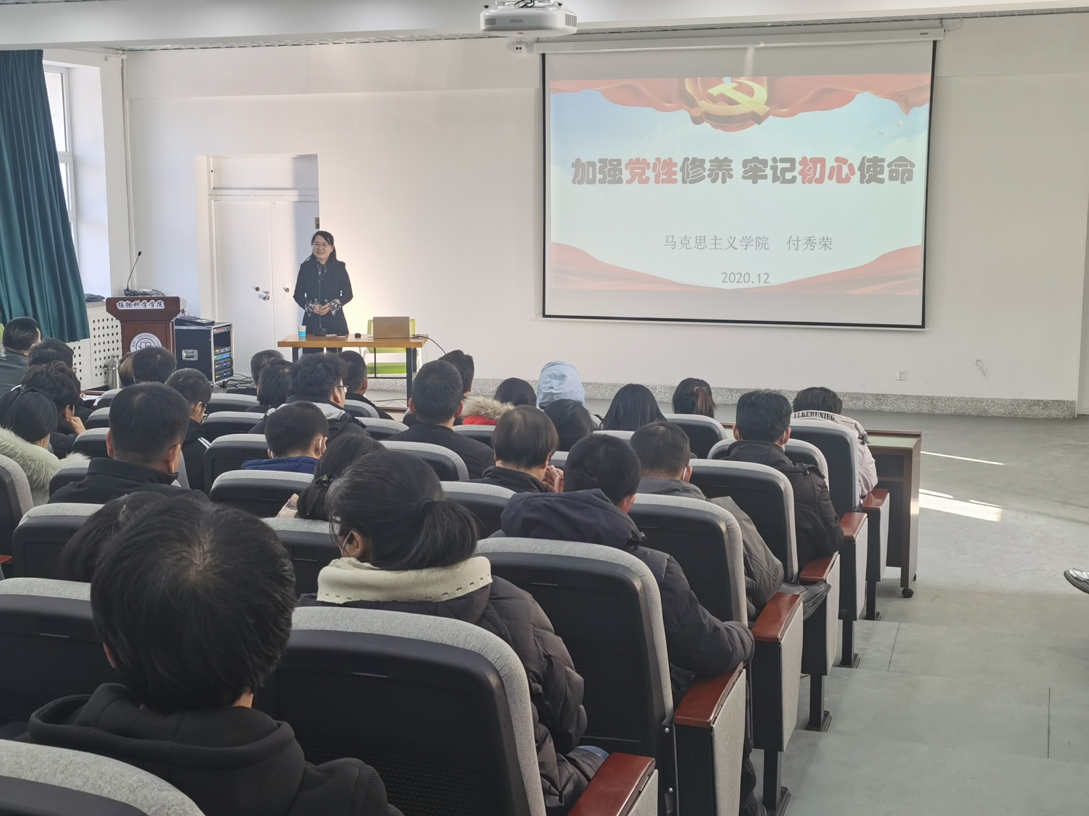 2020年12月4日下午,太阳集团tyc33455邀请到马克思主义公司付秀荣教授到院讲授《加强党性修养,牢记初心使命》专题党课,公司全体党员参加学习,党课由副经理韩俊友教授主持。