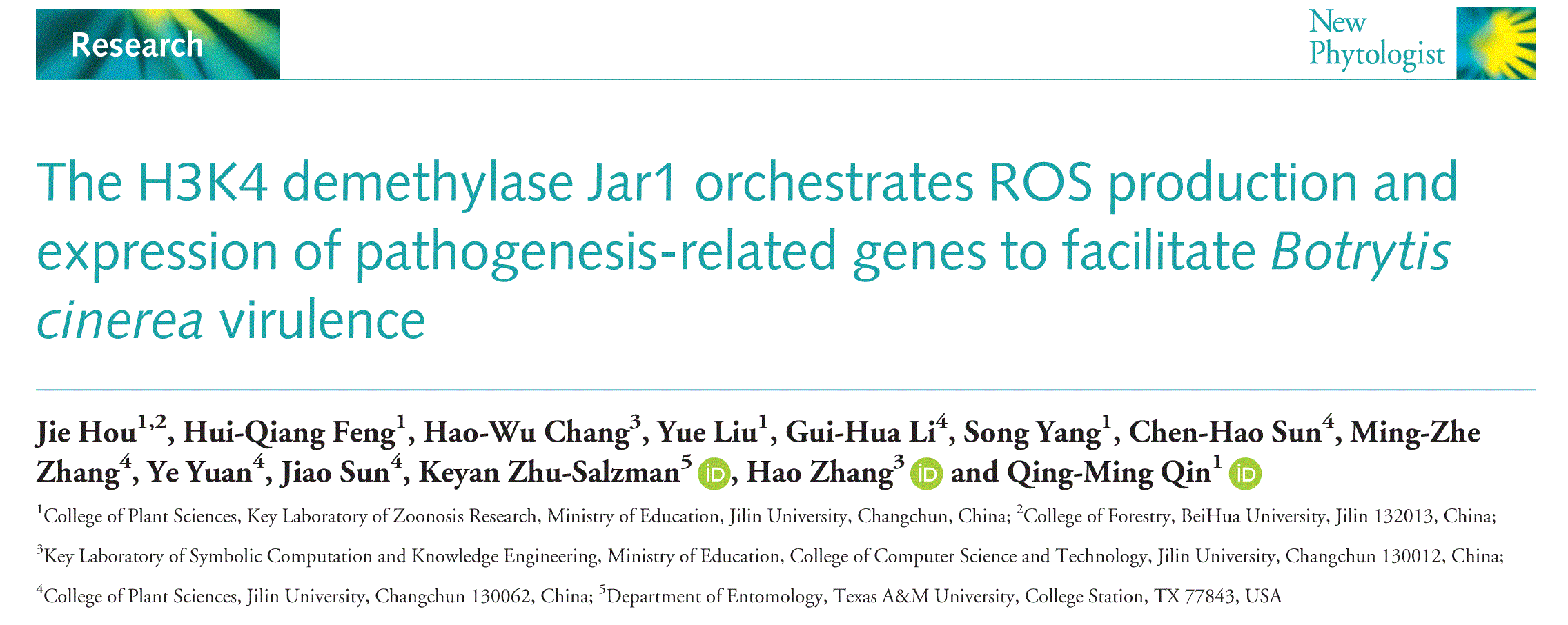 在病原-寄主互作过程中,组蛋白翻译后修饰在病原侵染和寄主防御过程中都发挥着重要的作用。去甲基化是一种重要的组蛋白翻译后修饰,但对于病原菌组蛋白H3赖氨酸4(H3K4)去甲基化酶JARID1(Jar1)/KDM5的功能及其调控病原发育和致病机理我们知之甚少。近日,太阳集团tyc33455秦庆明教授团队在New Phytologist发表了题为“The H3K4 demethylase Jar1 orchestrates ROSproduction and expression of pathogenesis-related genes to facilitate Botrytis cinerea virulence”的研究论文。该论文系统地阐述了灰霉病菌组蛋白去甲基化酶BcJar1在病原菌生长、发育及致病等过程中的功能,解析了BcJar1通过精细调控内源活性氧ROS产生、隔膜蛋白Septin的聚集和正确装配及致病相关基因表达促进其毒力的调控机制。