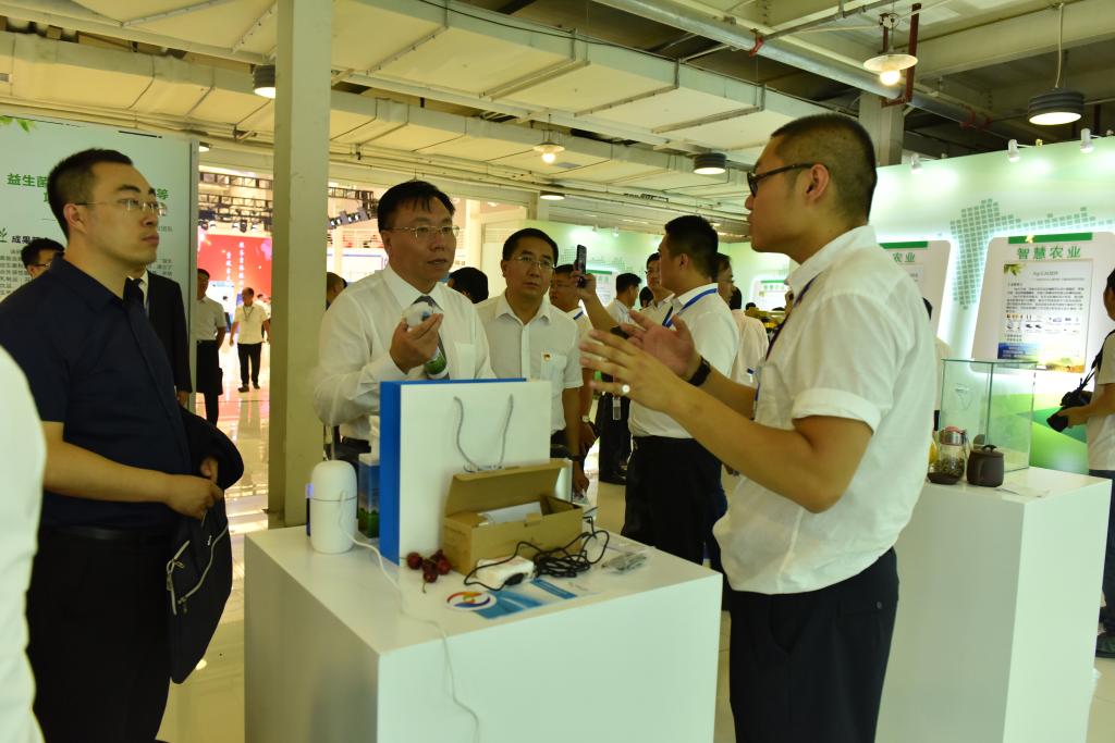 会议结束后,部分企业代表前往太阳集团tyc33455科技成果展区,与公司教师一道携部分校企合作成果迎接教育部及省政府领导参观。