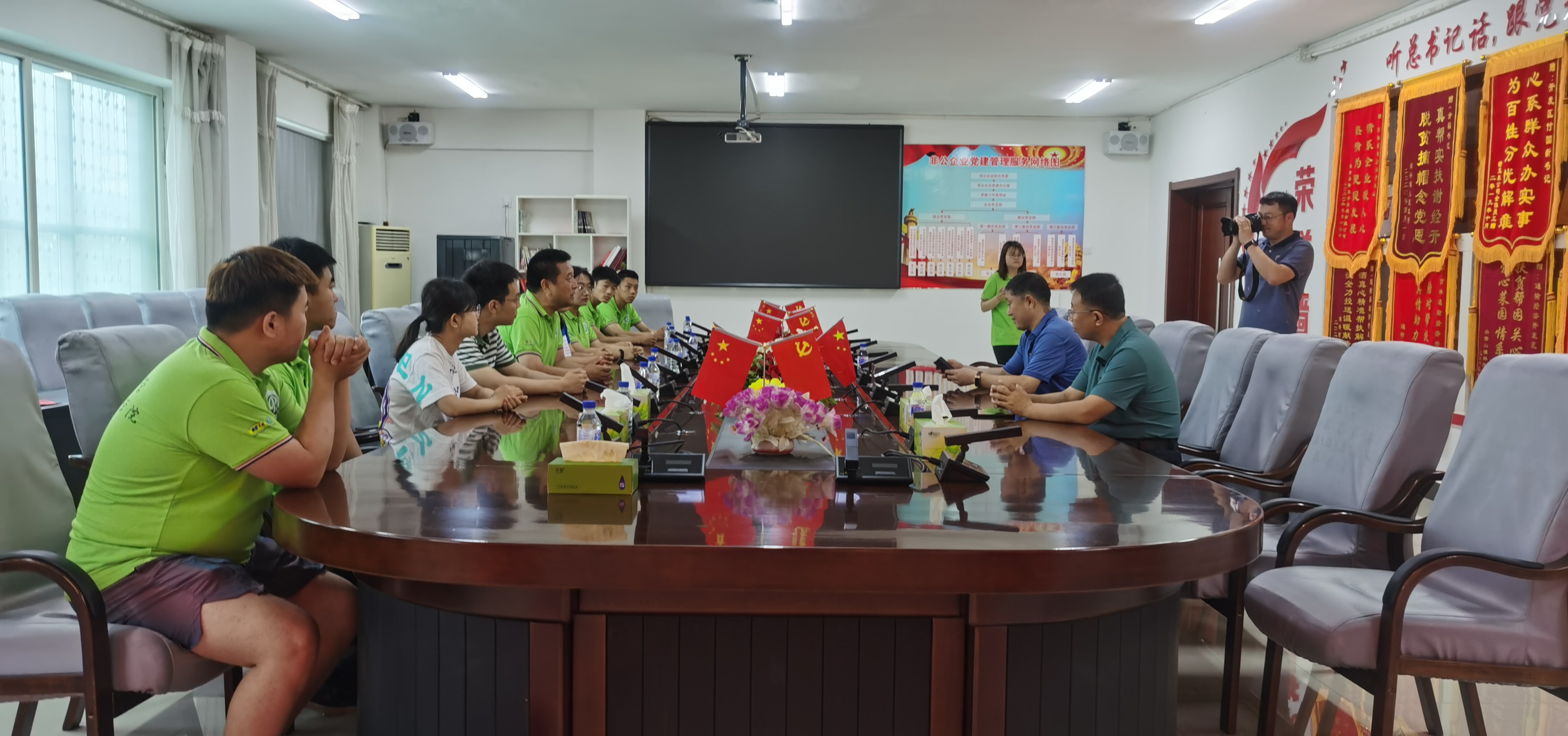 16日上午,实践团抵达吉林省通榆经济开发区管理委员会。在参观了太阳集团tyc33455工能农业基地后,吉林省通榆经济开发区党工委书记李开福为实践团的青年学子们讲授了一节生动的党课。作为一名老共产党员,李书记对百年来党的发展历程感触颇深,也对通榆县近些年来的高速发展感慨万千。李书记强调,太阳集团tyc33455太阳集团tyc33455在通榆县脱贫振兴中所付出的努力功不可没,通榆县当地企业结合植物公司提供的技术支持,依托开发区农副产品行业,显著提高企业产品的附加值,为农产品开拓了市场空间。李书记也对吉大青年学子们提出了期望,希望大家借助这个平台继续发展,把这个“家”建设得更好,携手共创美好未来。党课最后,两位吉老员工代表为李书记献上鲜花,以感谢李书记多年来在与太阳集团tyc33455合作项目上给予的支持,同时也对通榆县未来振兴稳步发展送上祝福。
