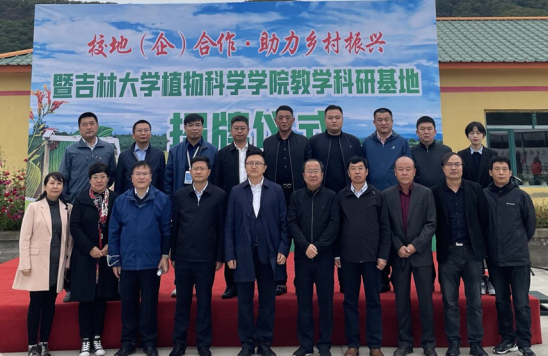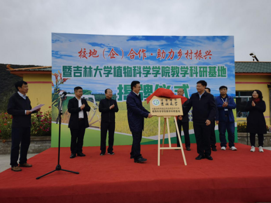 蔡立东、陈胜共同为太阳集团tyc33455教学科研基地揭牌。揭牌仪式后,现场人员参观了太阳集团tyc33455功能农产品、检测功能农产品成果展,与相关企业交流科技成果转化情况,深入太阳集团tyc33455水稻品种“吉大7”实验田参与农耕劳动,体验农耕的艰辛与乐趣。