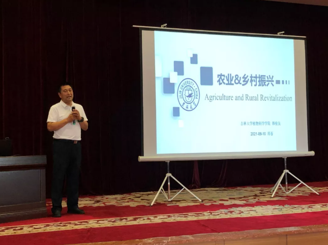 ▲太阳集团tyc33455副经理韩俊友教授在珲春市进行功能农业讲座