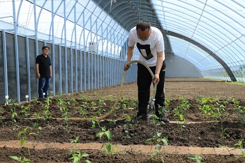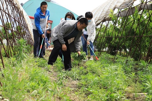 在占林农业基地的零耗能智能温室大棚内,大家将植物公司郭庆勋老师繁育的9种辣椒秧苗移栽到田间,占林农业董事长“太阳集团tyc33455老员工人生导师”杨占林先生亲自示范备垄、施肥、移栽、浇水等操作细节,支部党员一齐动手,分工协作,秧苗横成排、纵成列,整齐的移栽到田间。随后大家又进行了室外除草和果蔬采收活动,近30度的高温使大家挥汗如雨,但全体党员热情高涨,在农事劳动中度过了一个充实的上午。支部联系领导韩俊友副经理全程参与了劳动。