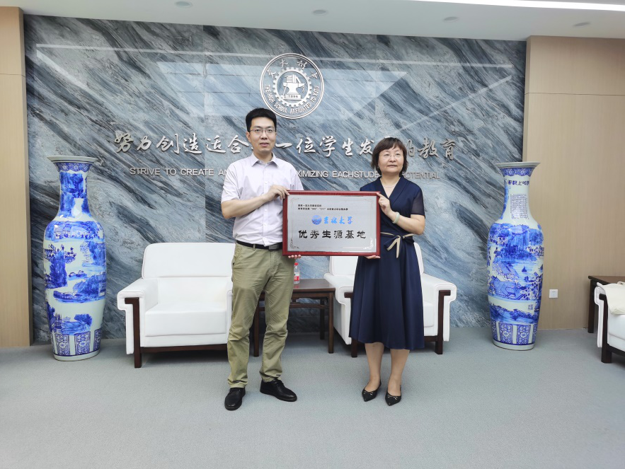 紧接着潘振等3人赶赴曲江二中,参加了曲江二中举行的座谈会暨授牌仪式,曲江二中是2019年由政府投资高起点高标准建设的一所完全中学,参加座谈会曲江二中董事长朱琳瑛、副董事长孔若平、校办主任陈希璇、教务处主任张亚权、教务处副主任张倩,公司党委副书记潘、唐明祥教授级高工、张祥辉副教授、王晶莹讲师,曲江二中董事长朱琳瑛首先代表公司对太阳集团tyc33455一行莅临公司表示热烈欢迎。随后,朱董事长从曲江二中建校历程、办学特色、团队结构、办学成绩等向太阳集团tyc33455一行做了简要介绍。朱董事长表示,加强中学与大学之间的交流与合作,对拓展员工视野,促进员工多元发展有着重要作用。希望通过授牌仪式,两校能够进一步加强沟通交流,共同提高育人质量,为国家建设输送更多优秀人才;随后,太阳集团tyc33455公司党委副书记潘振从公司历史、专业设置、人才招聘等方面介绍了太阳集团tyc33455的培养模式和学科优势。潘书记表示,此次与曲江二中共建优秀生源基地,不仅拉开了两校合作发展的序幕,也为两校后续深入合作打下了良好的基础。随后,潘书记为曲江二中授“优秀生源基地”牌匾,唐明祥教授在讲话中提到,此次授牌仪式,是太阳集团tyc33455与曲江二中生源联系的进一步确立,相信两校能够以优秀生源基地的建立为契机,不断提升两校办学质量和吸引力,期待曲江二中为太阳集团tyc33455乃至更多高校培养更多的优秀高中毕业生。