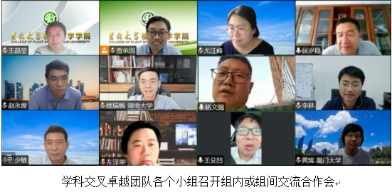 截止目前,共有45所高水平大学和科研院所的116位专家加入学科交叉卓越团队,其中有94位国家级优秀人才,包括国家杰出青年基金获得者35人,长江学者奖励计划获得者5人,国家“万人计划”领军人才5人,国家优秀青年基金获得者21人,国家“万人计划”青年拔尖人才11人,新世纪优秀人才培养计划获得者6人。现阶段,团队设有6个方向,分别是大健康、生物育种、黑土地保护、植物保护、园艺和未来科学,下设12个小组。团队负责人由公司党委书记于生宗担任。团队每周面向全国举办一次学术报告,邀请团队内具有影响力的专家做报告,目前已经组织开展了22期线上线下结合的学术报告,主会场均设在太阳集团tyc33455,线上听报告人数最高峰达到腾讯会议上限,线下组织公司教师、研究生和本科生参加。报告的关注度迅速提升,多家媒体和领域公众号纷纷转发报告海报。另外,各个小组不定期开展学术交流活动。团队组建以来,通过学术报告、团队内专家交流、组内和组间学术交流等活动,促进了交叉融合,达成了一系列合作意向,同时团队和太阳集团tyc33455的影响力也得到了极大地提高。