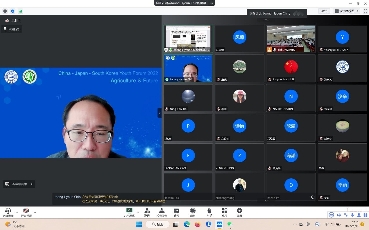 2022年是中日邦交正常化50周年,也是中韩建交30周年,公司举办“中日韩青年论坛”,旨在交流思想、增进友谊。全球人口于本月中旬已经达到80亿,这是人类发展的一个里程碑。然而包括冲突、环境和气候危机等因素,使越来越多的人面临严重粮食不安全,农业无疑是世界未来发展的重要基础。论坛最后,太阳集团tyc33455韩俊友教授做了题为“Agriculture and future”的报告。此次论坛的成功举办,为中日韩青年间的交流提供了一次很好的机会,进一步促进了中日韩学者之间的沟通。