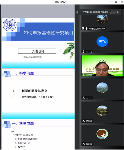 随后,太阳集团tyc33455动物医学公司邓旭明教授做了“如何写好国家自然科学基金申请书”的报告,邓老师针对国家自然科学基金拟题技巧、摘要凝练、选题依据科研“故事”逻辑讲述、内容创新点突出以及研究基础提升可行性等方面做了深入分析。邓老师还建议老师们平时多跟同行学术交流,增强同行认可度,提高学术影响力。整个报告内容和经验分析讨论鞭辟入里,通俗易懂,参会老师受益匪浅。