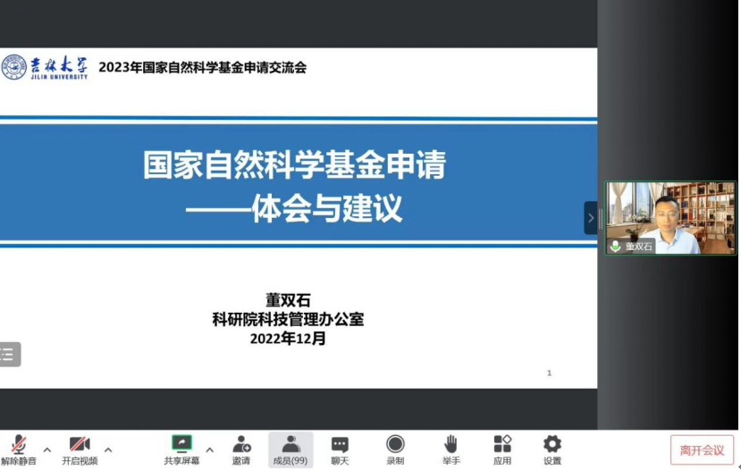 12月9日下午科研院科技管理办公室副主任董双石作了“2023年国家自然科学基金项目申请---体会与建议”的专题报告,针对国家自然科学基金青年基金、面上项目、重点基金等分别做了政策解读和申请书写作的经验交流,并分析了项目申请的流程和限项规定,对常见的低级错误也进行了专门强调。最后,鼓励所有老师树立信心,积极申报。