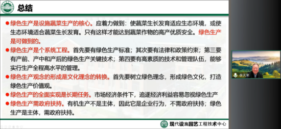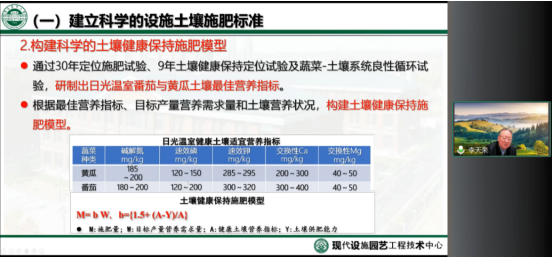 随后,李院士针对设施土壤障碍提出了绿色防控关键措施,包括通过建立科学的设施土壤健康评价体系,构建科学的土壤健康保持施肥模型,从而建立科学的设施土壤施肥标准;通过科学地划分土壤等级、实施抑酸增碳补钾添钙的施肥策略、控酸减盐增碳的修复策略及营养基质高效利用策略;对于轻度和重度土壤障碍修复分别采用畜禽粪、秸秆、草炭、消石灰等有机物料与外源钙和生物碳配施及以畜禽粪、秸秆、菇渣等为原料,研制出环境友好低成本营养基质栽培模式与技术等。李院士对设施蔬菜土壤障碍的全面细致的分析与成果展示,为设施蔬菜绿色生产及生物质的优化利用提供了新的思路。