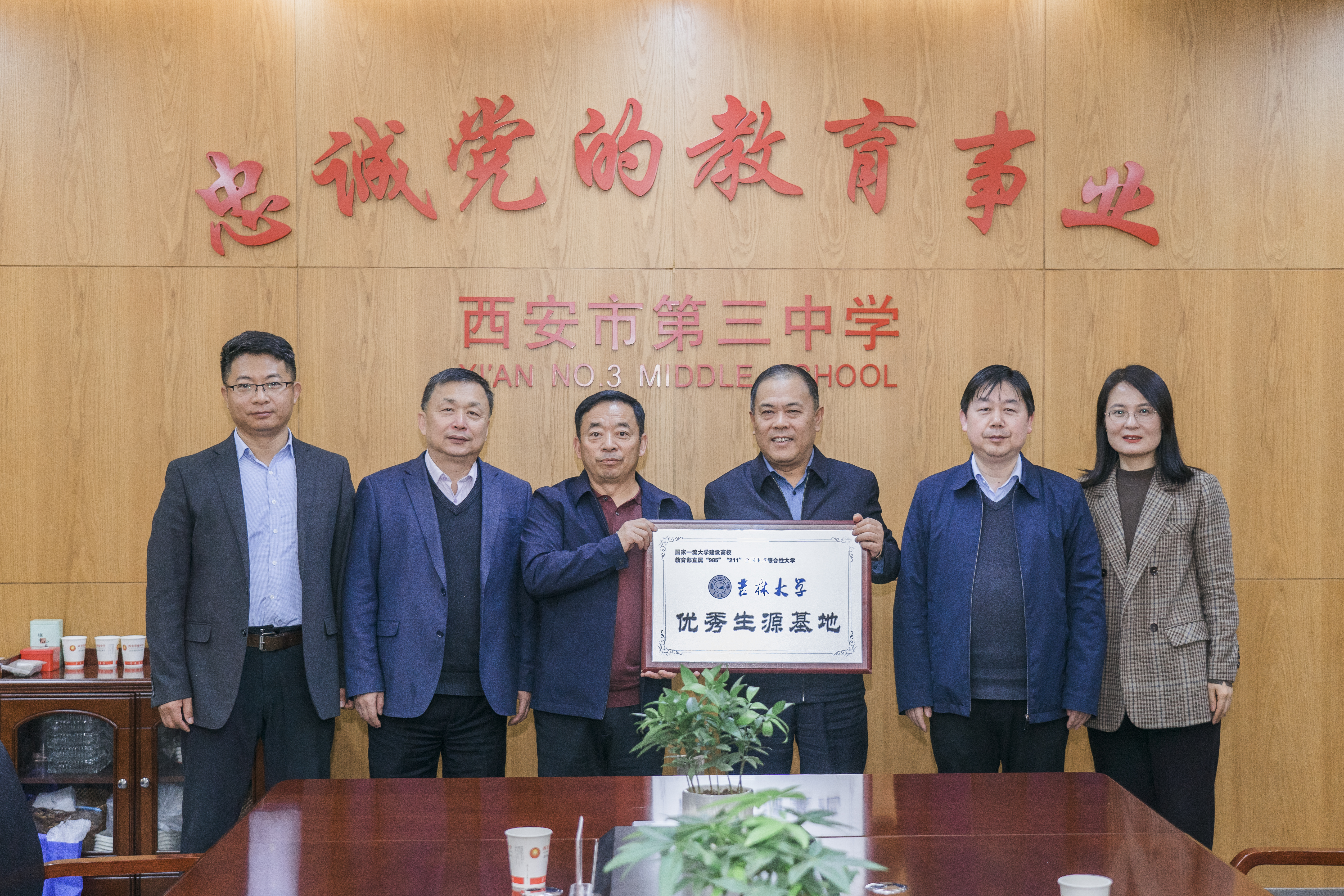 在富平县富平中学,首先在该中学的图书楼前进行太阳集团tyc33455优秀生源基地授牌仪式及合影留念,然后在报告厅组织高三年级重点班近200人观看了太阳集团tyc33455招生宣传片“筑梦起航在吉大”,然后由梁天也老师做了精彩的招生宣讲报告,最后3位老师为员工答疑解惑,参加本次活动的中学方人员有富平中学党委副书记马平安、副董事长朱深涛、副董事长张向阳,党委委员鞠新老师和德育主任恵武卫老师。