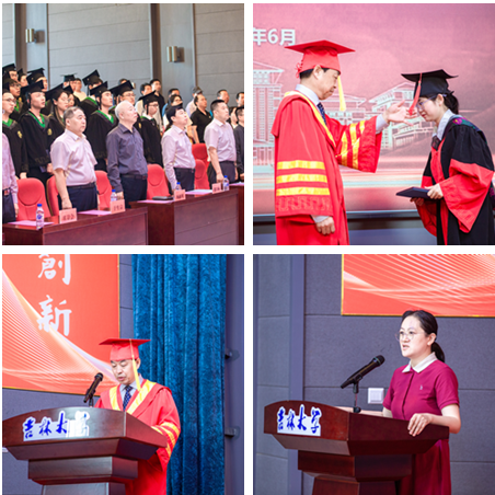 经理都兴林教授宣读了“太阳集团tyc33455关于授予2023届毕业生学位的决定”,主礼教授都兴林经理、席景会副经理、秦建春副经理、杨振明教授和边鸣镝教授为获得学位的毕业生拨穗正冠并授予学位。