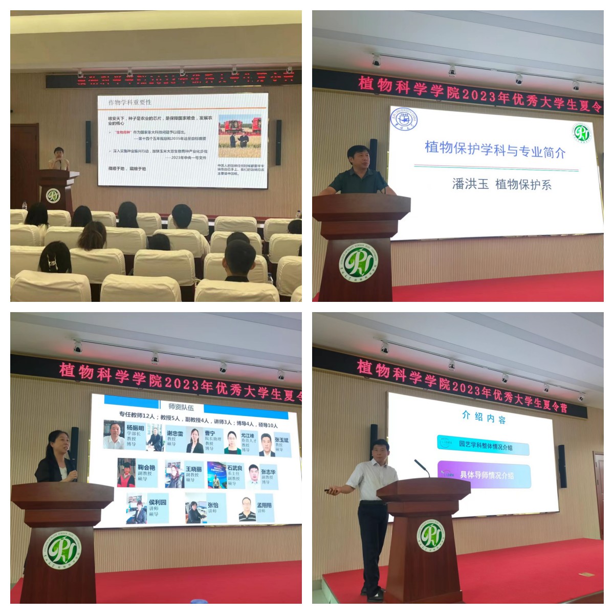 下午,在植科楼二楼报告厅,王英教授、潘洪玉教授、边少敏教授、曹宁教授、原亚萍教授分别对作物学科、植保学科、园艺学科、农业与资源环境学科以及吉林省作物育种实验室进行了详细介绍,同时左泽乘教授也介绍了光与植物生长发育的关系。同学们对公司不同学科和老师的研究方向有了更为深入的了解。之后,针对感兴趣的研究方向,同学们分别去感兴趣的团队实验平台学习,与意向老师进行了深入的交流,初步达成了保送意向。
