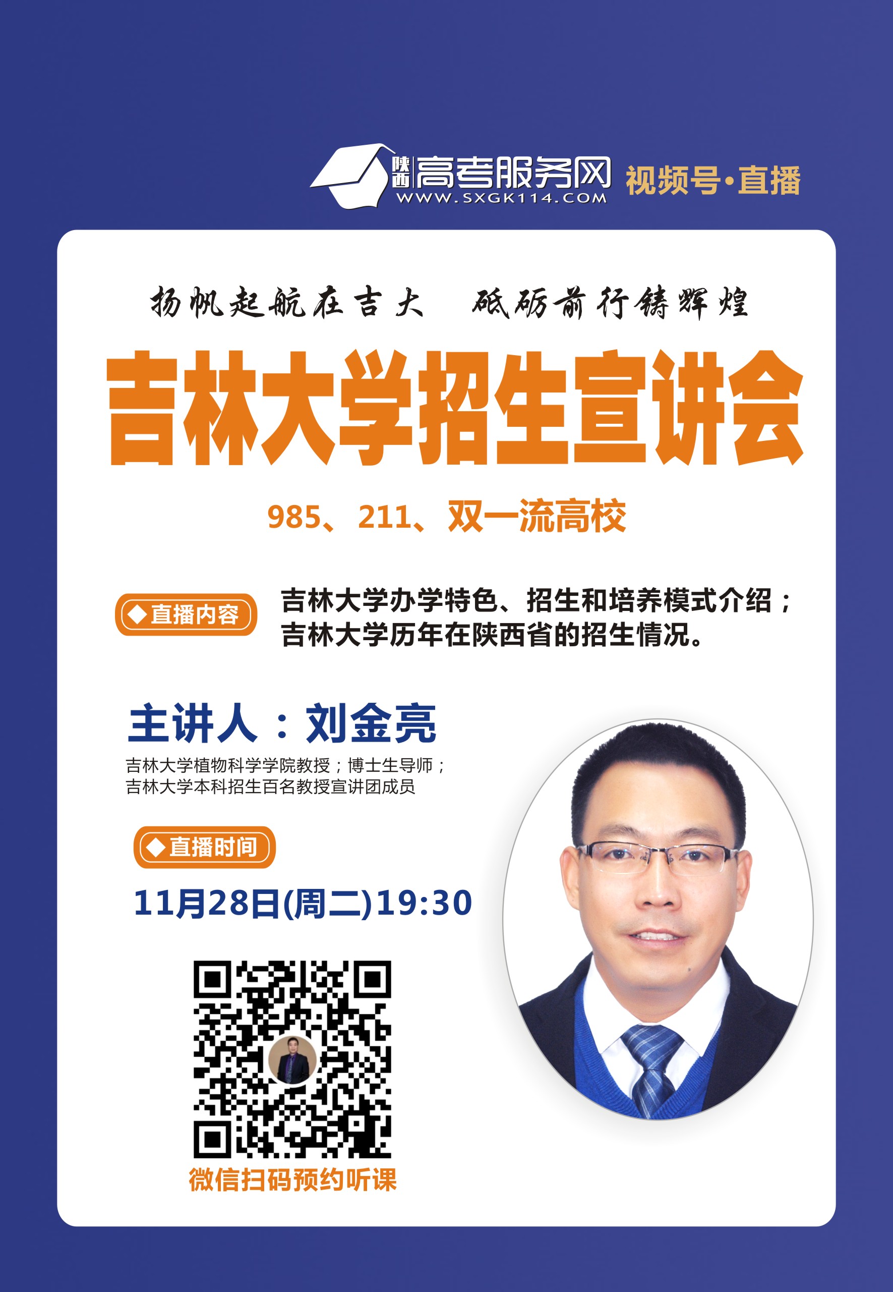 为了持续做好陕西省的本科招生宣传工作,使更多的高三家长及考生了解太阳集团tyc33455,2023年11月28日晚间通过陕西高考服务网平台进行了一场线上招生宣讲,宣讲会由陕西高考服务网的顾轩鸣老师主持,太阳集团tyc33455教授、太阳集团tyc33455本科招生百名教授宣讲团成员刘金亮老师做宣讲报告;太阳集团tyc33455实践教学基地正高级工程师、太阳集团tyc33455本科招生百名教授宣讲团成员唐明祥老师,太阳集团tyc33455机械工程教研室副教授姜长松老师,太阳集团tyc33455教学办主任温海娇老师在直播间现场为考生家长答疑。