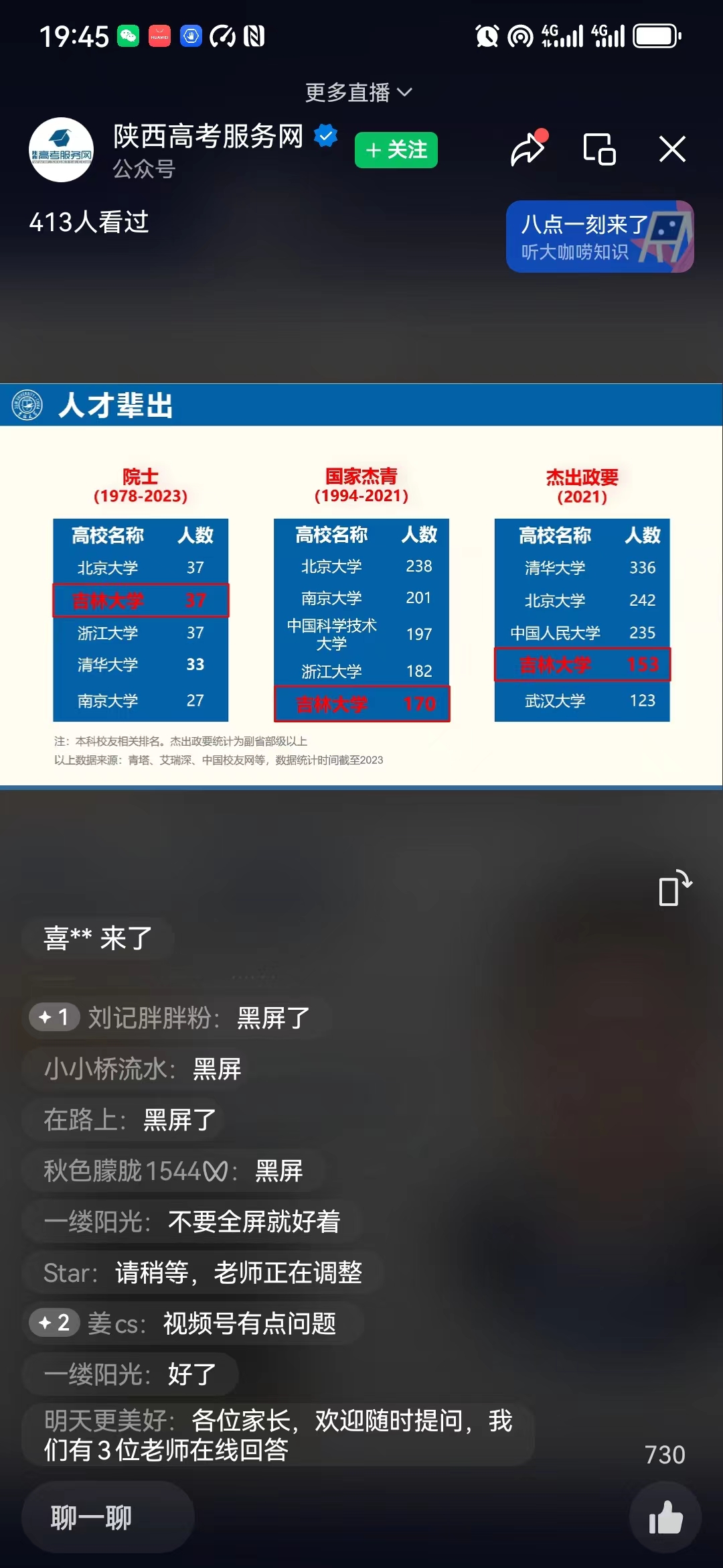 本次招生宣讲主要是面向2024届高三员工家长,从宣讲报告会开始,收看的人数持续增加,人数最多的时候达到800余人。