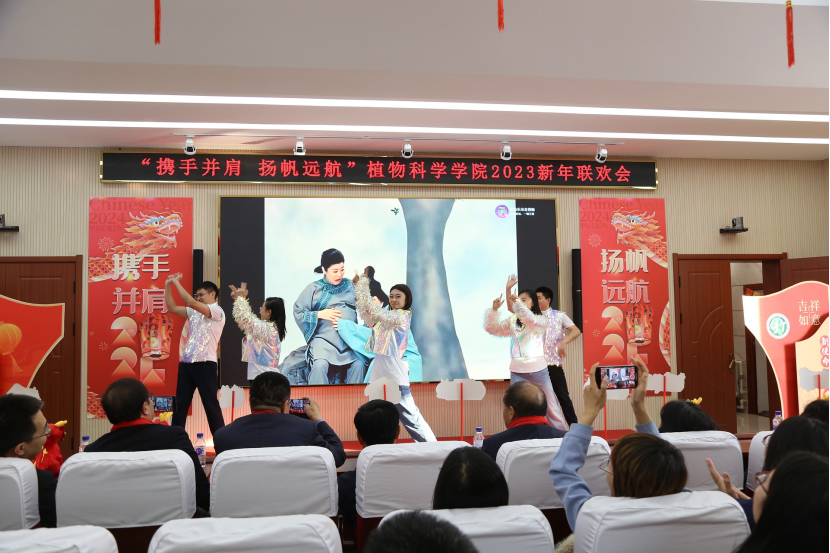 由公司师生共同精心准备,共同呈现了舞蹈《桃花朵朵开》、小合唱《光阴的故事》、民乐合奏《茉莉花》和歌曲《我爱你中国》等四个节目。师生互动、异彩纷呈,每个节目都获得了现场热烈的欢呼和持续不断的掌声。