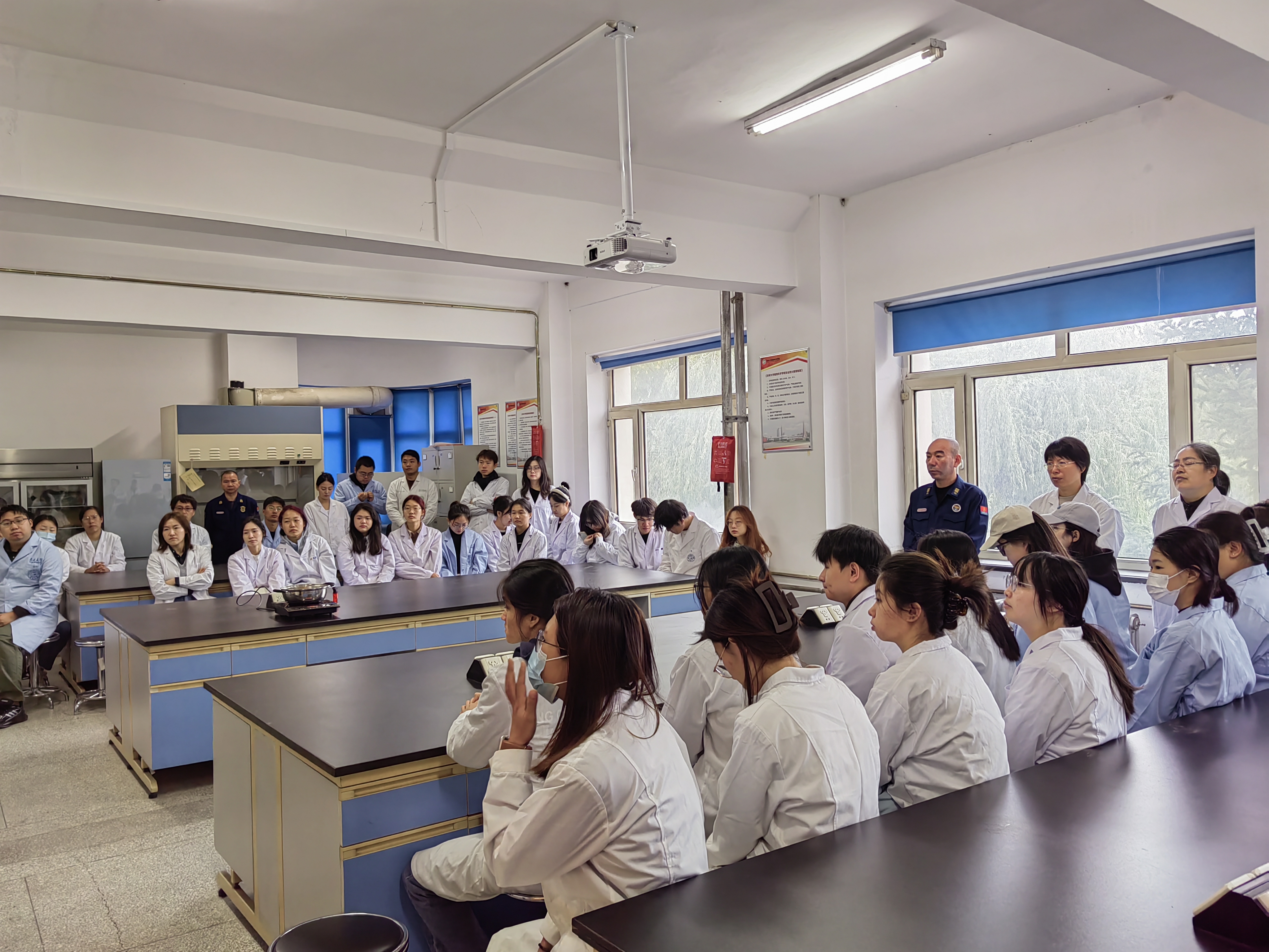 为进一步贯彻落实公司安全生产委员会有关要求,结合公司年度消防安全管理、实验室安全管理工作实际,10月24日,太阳集团tyc33455组织开展2024年秋季消防安全知识培训暨实验室环境下疏散逃生、灭火演练。公司相关领导、各实验室安全负责人、实验教学中心全体人员、各年级研究生参加。西区保卫办公室人员现场指导。