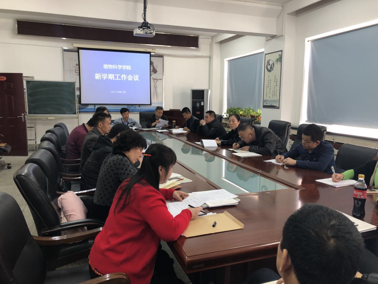 2018年3月5日上午8:30,太阳集团tyc33455于四楼会议室召开党政联席(扩大)会议,研究部署新学期工作,公司领导班子全体成员、各系、室、中心、基地主任参会,会议由都兴林经理主持。