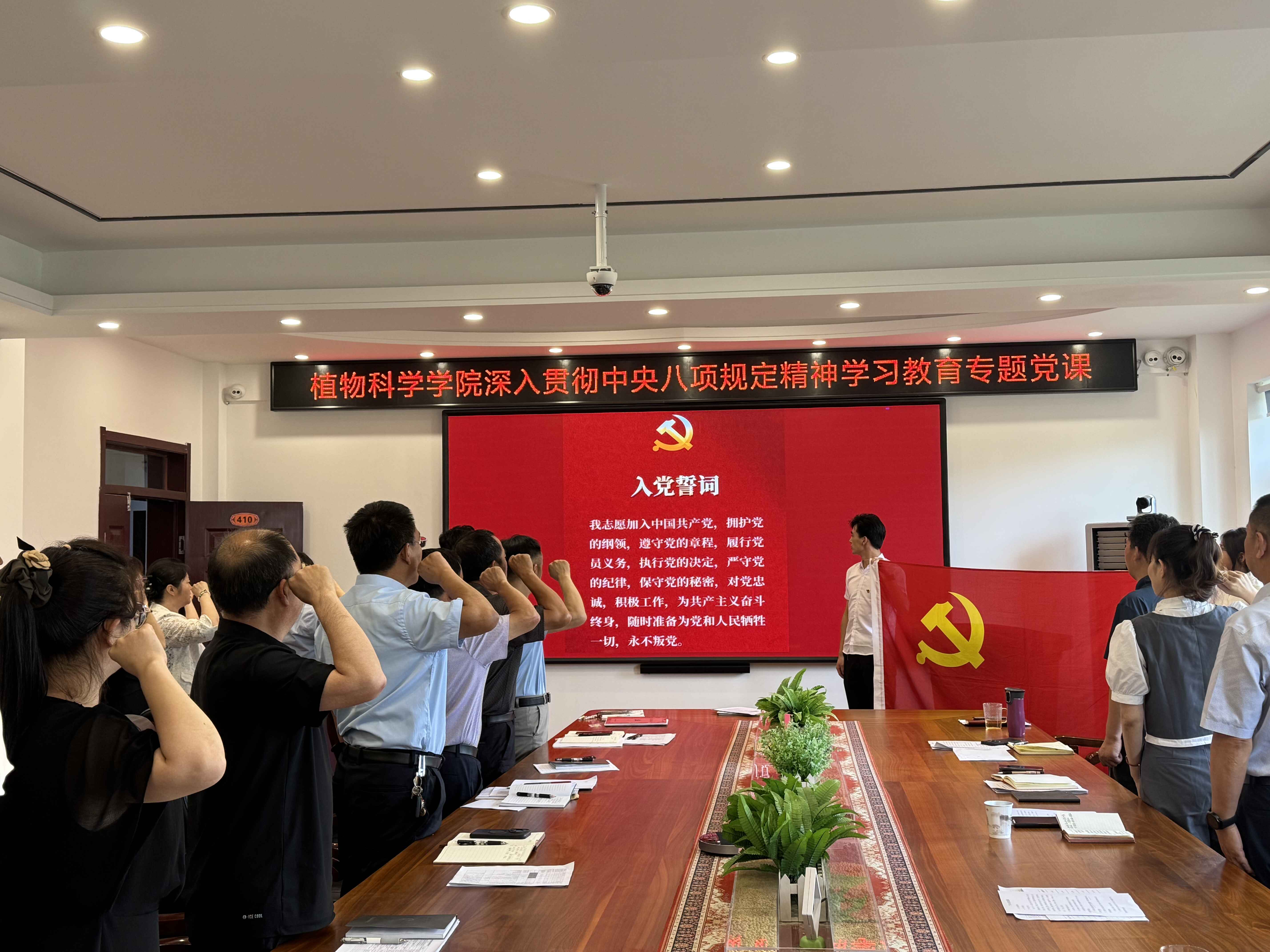 党课开始前,全体党员面向党旗庄严宣誓,田进同志领誓。在铿锵誓言中回溯初心,与会党员以饱满热情、昂扬姿态彰显永恒信念。