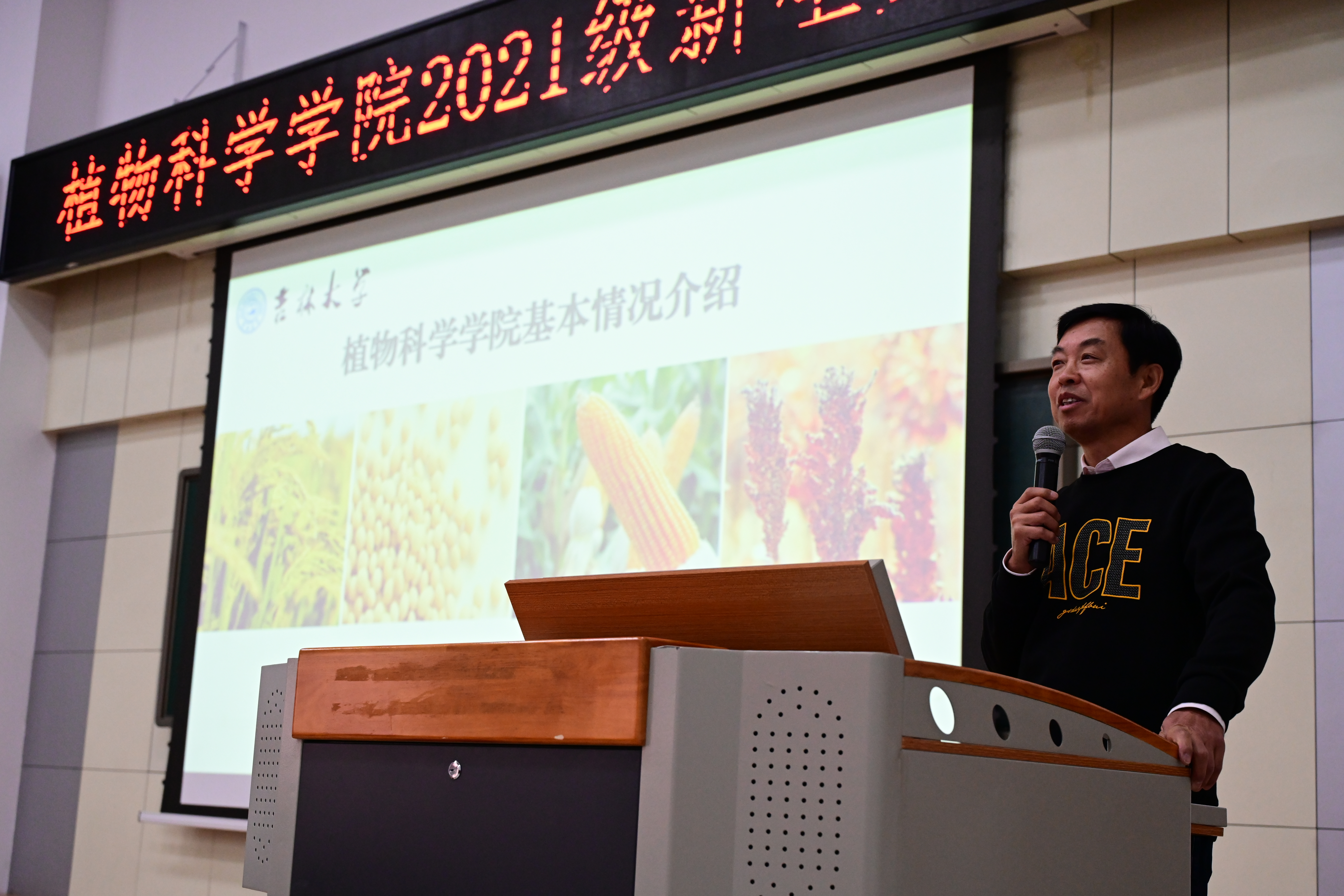 经理都兴林教授就公司基本情况展开介绍,阐述了公司发展的历程和取得的成绩,展望了未来发展前景,表达了对同学们的殷切期望,提出新一届“植科人”要能够脚踏实地孜孜以求,认真度过大学四年学习生活,并在未来向新农科发展的更高目标处迈进。要继往开来,与建校七十五周年的吉大同心,与绵延数千年的农学同向,秉持求实创新的火炬,点亮励志图强的灯塔,不懈奋斗,继承和发扬植科精神,追求梦想,无悔青春。