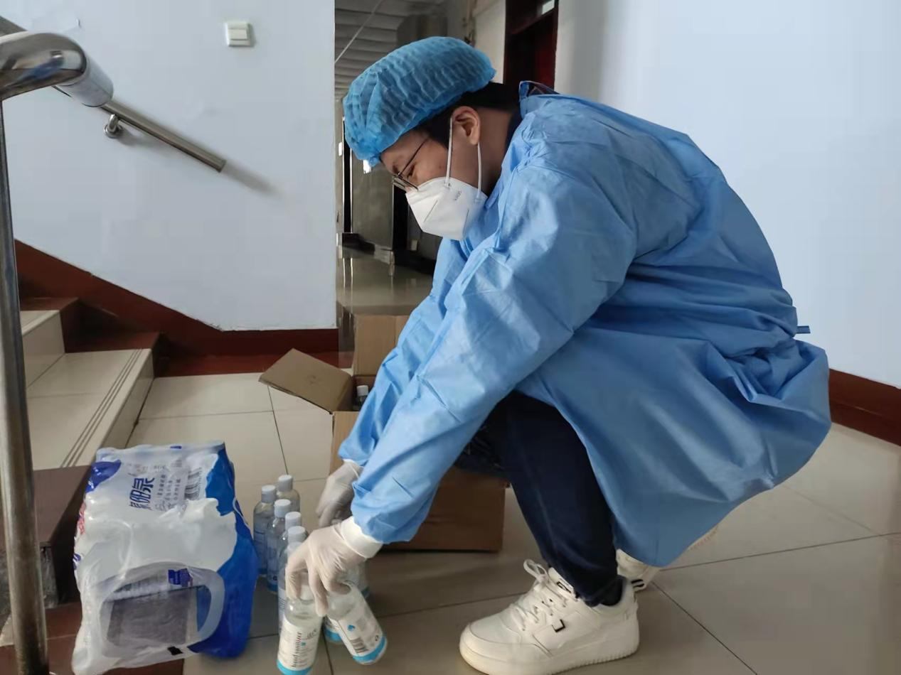 一日三餐、两次抗原检测、一次核酸检测、发放饮用水和生活必需品,这些看似简单的事情,但结合每天的6点30分、9点、10点20分、11点10分、14点20分、20点这七个时间点就构成了志愿者们忙碌的一天。“收到”、“阴性,已上传”、“做完核酸已到寝室”……这些听起来简短的回复,背后却是志愿者同学每天要去统计并汇报给老师的信息。截止到目前,四名同学共累计分发餐食2000余盒,饮用水100余箱,组织核酸咽拭子检测9次,组织抗原试剂盒检测12次。