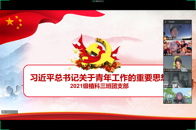 为积极响应党的号召,2020级农业资源与环境团支部于线上举办以“学习习近平总书记关于青年工作的重要论述”为主题的团日活动。团支书带领同学们从了解习近平总书记讲话的内容到内涵,明确永远跟党走的坚定信念,在担当中历练,在实现中国梦的生动实践中放飞青春梦想,努力成为德智体美劳全面发展的社会主义建设者和接班人,爱党爱国不负时代。