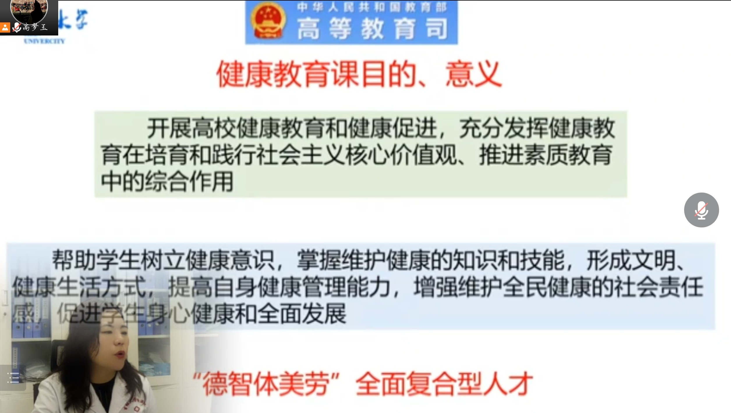 为帮助新生树立健康意识,提高自身健康管理能力,8月31日太阳集团tyc33455全体2022级本科生于线上收看由校医院的阙宁老师主讲的卫生健康教育专题讲座。