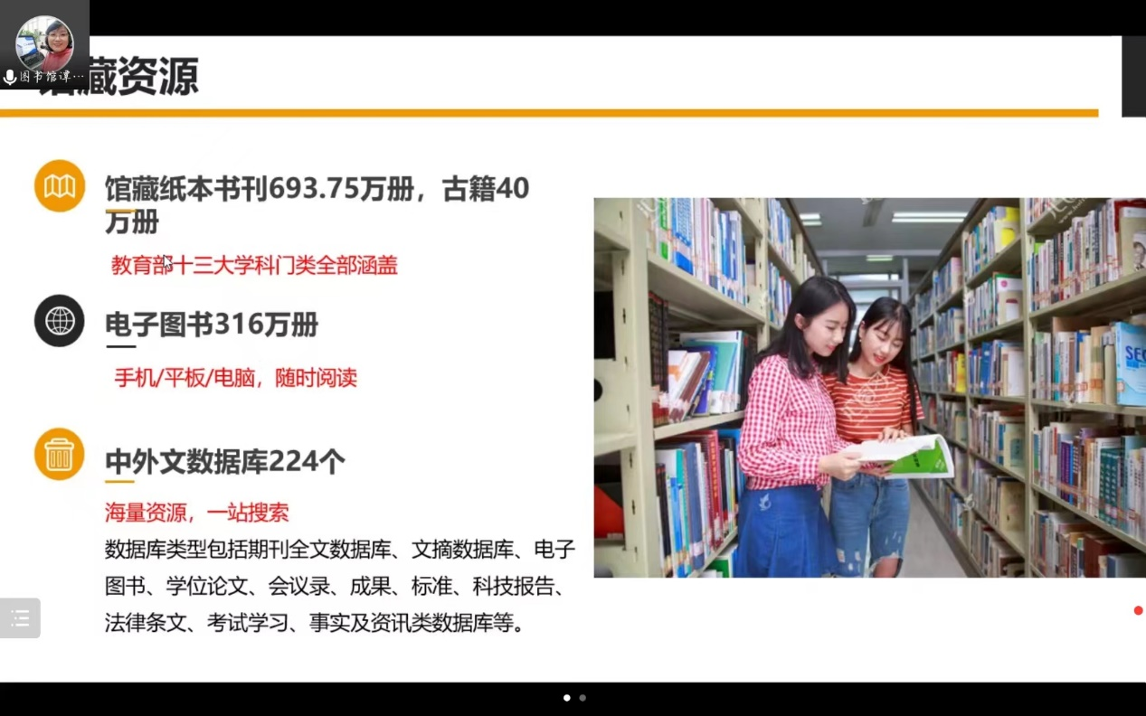 为让新生了解、认识公司图书馆,指导新生学会充分利用图书馆的服务与资源,了解图书馆的服务模式、运行机制、藏书布局、规章制度等,8月31日,太阳集团tyc33455与动物医学公司联合举办2022级新生图书馆入馆教育专题线上讲座。本次讲座主讲人为图书馆谭智敏老师,太阳集团tyc33455全体2022级本科生、新生辅导员高梦玉线上参会。会议由动物医学公司张宇欣同学主持。