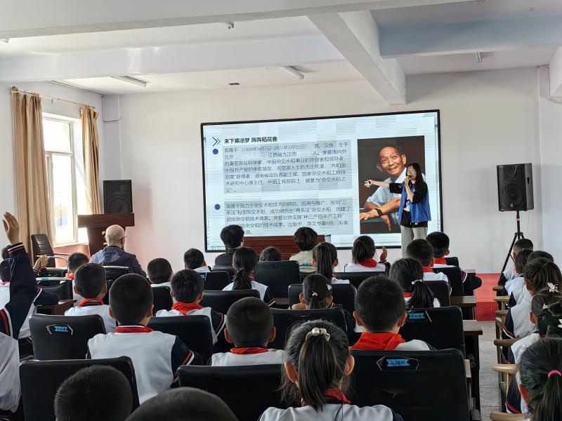为弘扬学习习近平总书记给中国农业大学科技小院的同学们的回信精神,引导青少年学习袁隆平院士高贵品质和崇高风范,以实干实效继承袁隆平院士的遗志,5月22日,在袁隆平院士逝世两周年之际,太阳集团tyc33455实践团联合公司港澳台员工前往珲春市哈达门乡中心公司开展宣讲活动,向公司员工宣讲袁隆平院士事迹、开展我国农耕文明知识讲座。