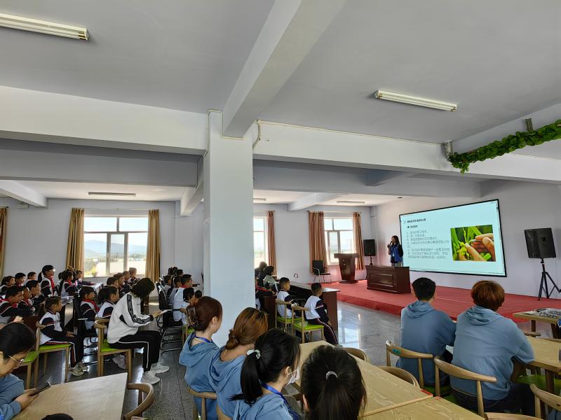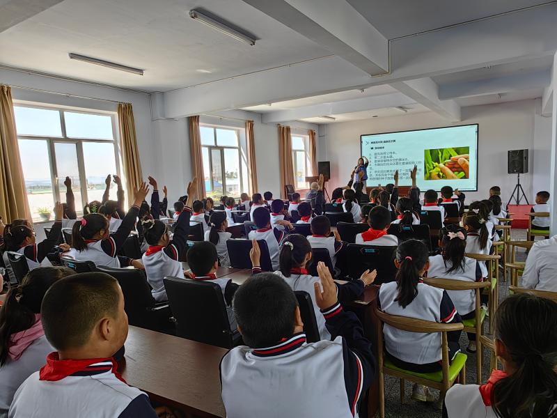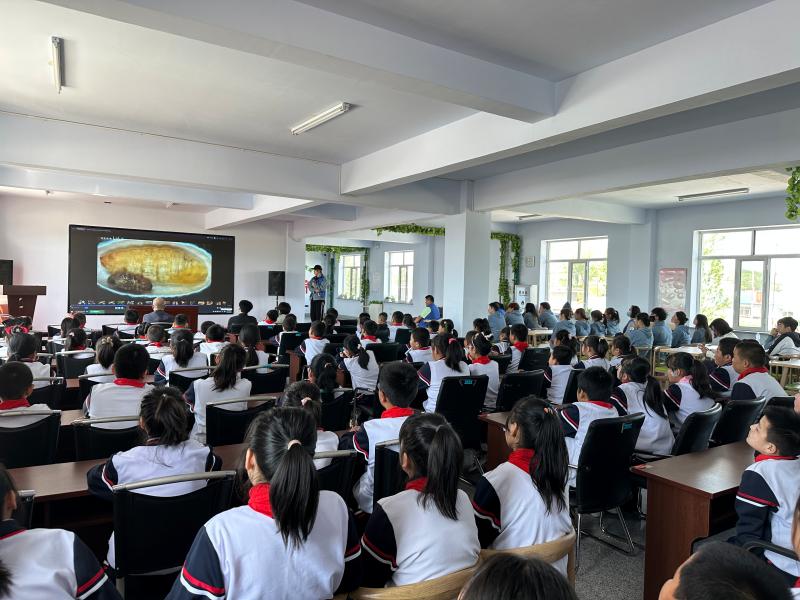 2021级植物保护专业本科生李若愚以中国农耕文化——蚕桑文化为主题向在场的同学们科普中华农耕文明知识。在实践团成员一个个启发式的提问中,孩子们争相回答,一步步了解蚕桑知识和历史文化,逐渐进入并开始探秘丝绸世界。从丝绸之路到一带一路,从华夏文明到锦绣中华,丝绸的发展无不体现着科技的进步和人类的智慧。实践团成员通过播放视频等方式带领孩子们学习抽丝剥茧、编程织造的过程。孩子们不仅感受到了劳动人民的智慧,也领略到了我国丝绸科技与文化的魅力。讲座结束后,实践团向哈达门乡中心公司赠送图书、设立图书角,赠送太阳集团tyc33455师生制作的昆虫标本及公司文创产品。活动受到了当地公司师生的一致好评和欢迎。