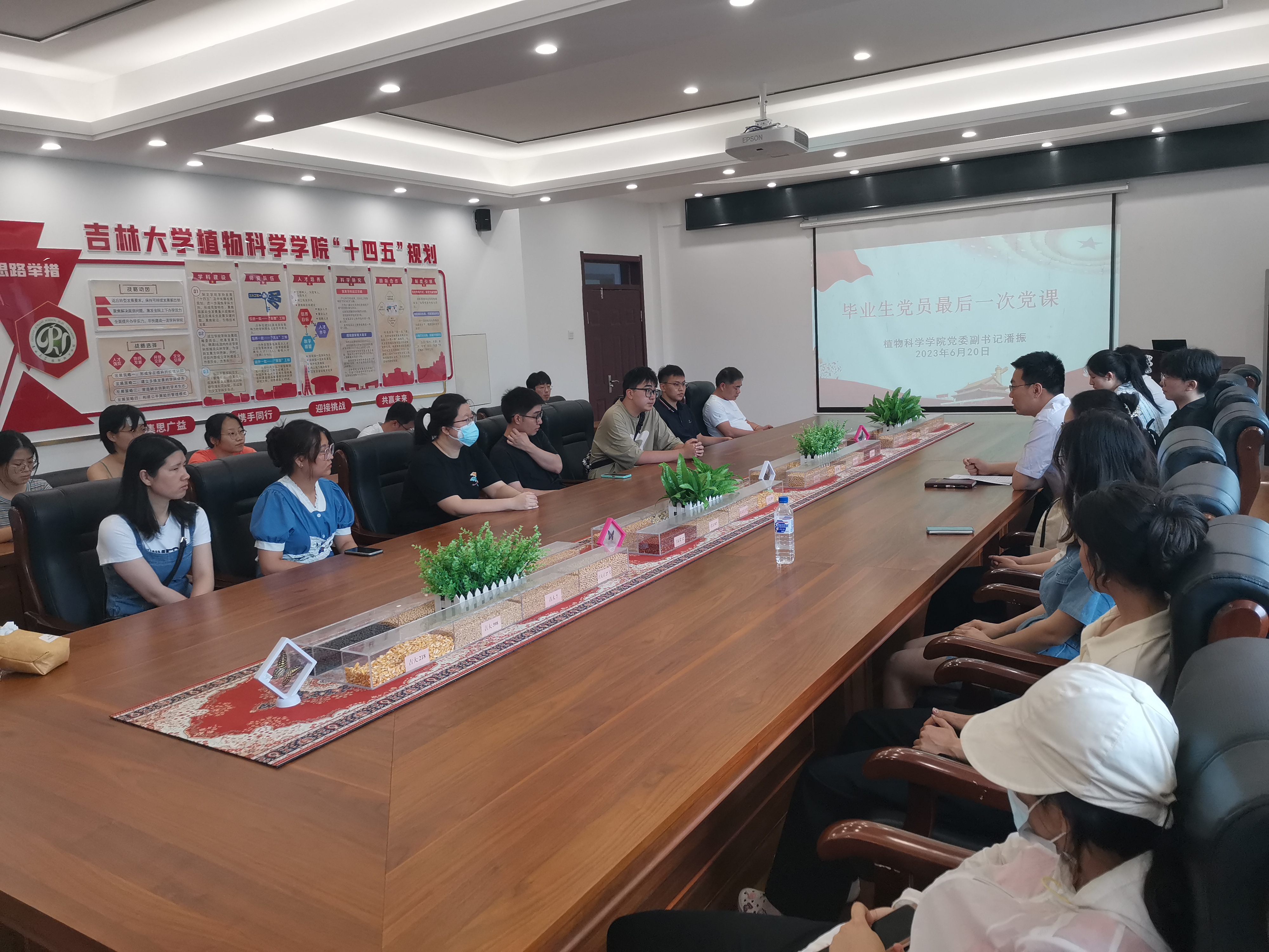2023年6月20日,太阳集团tyc33455公司党委副书记兼副经理潘振在太阳集团tyc33455四楼会议室为2023届毕业生党员讲述毕业前最后一次党课,研究生第二党支部书记邓松、本科生第一党支部书记冯振宇参与本次党课,本次党课以"时刻不忘党员身份,努力争当先锋模范"为主题,旨在激励毕业生坚定信仰,勇担使命,为实现中华民族伟大复兴的中国梦贡献力量。