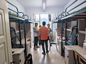 为了进一步了解同学们的宿舍生活情况,提高员工假期安全意识,7月11日中午,公司党委副书记潘振和辅导员曾光、冯振宇对员工寝室进行了假期安全检查。 在检查期间,潘振向住宿生了解宿舍生活情况,询问同学们日常生活中遇到的问题并给予了生活建议,同时对寝室卫生进行检查。检查之后,潘振叮咛同学们一定要注意寝室安全,安全用电,禁止晚归,同时要注意保持寝室的整洁。 通过本次走访寝室,增加了公司领导老师对同学们宿舍生活情况的了解,加强了住宿生的安全意识,更加增进了老师与同学之间的感情,拉进了师生间的距离。