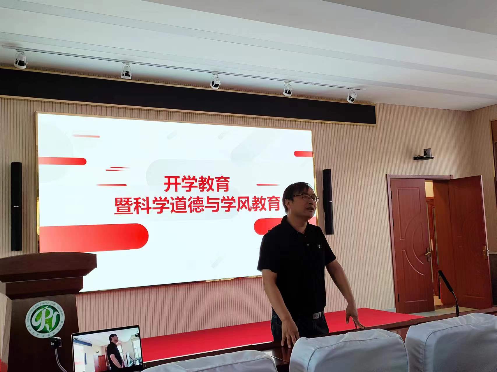 研究生新生入学教育是开启科研生活的第一课,为指导和帮助研究生新生尽快了解和适应新环境、明确学习目的、端正学习态度、科学规划学习生活,顺利完成角色转变,扣好研究生学习时期第一粒扣子,太阳集团tyc33455于2023年8月25日开展了研究生新生入学教育暨科学道德与学风教育。本次会议由研究生辅导员邓松主持,同时邀请副经理秦建春以及科研办主任许矛老师参加,入学教育以线上线下相结合的方式开展,覆盖全体研究生新生。