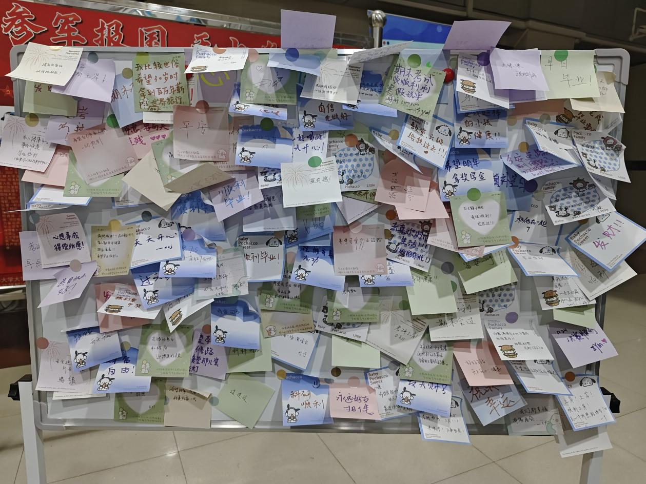 当烦恼具体到书面,小小的碎纸机粉碎的不仅是烦恼,更是卸下了心灵上沉重的包袱。当心愿跃然纸上,心愿墙上描绘的不仅是诗与远方,更是彰示着一往无前的信念。参与的同学们有的将自己的烦恼、焦虑写在一张张小纸条,扔进碎纸机里;有的将自己的心愿贴在心愿墙上,由此形成烦恼的消解与正能量的传递。