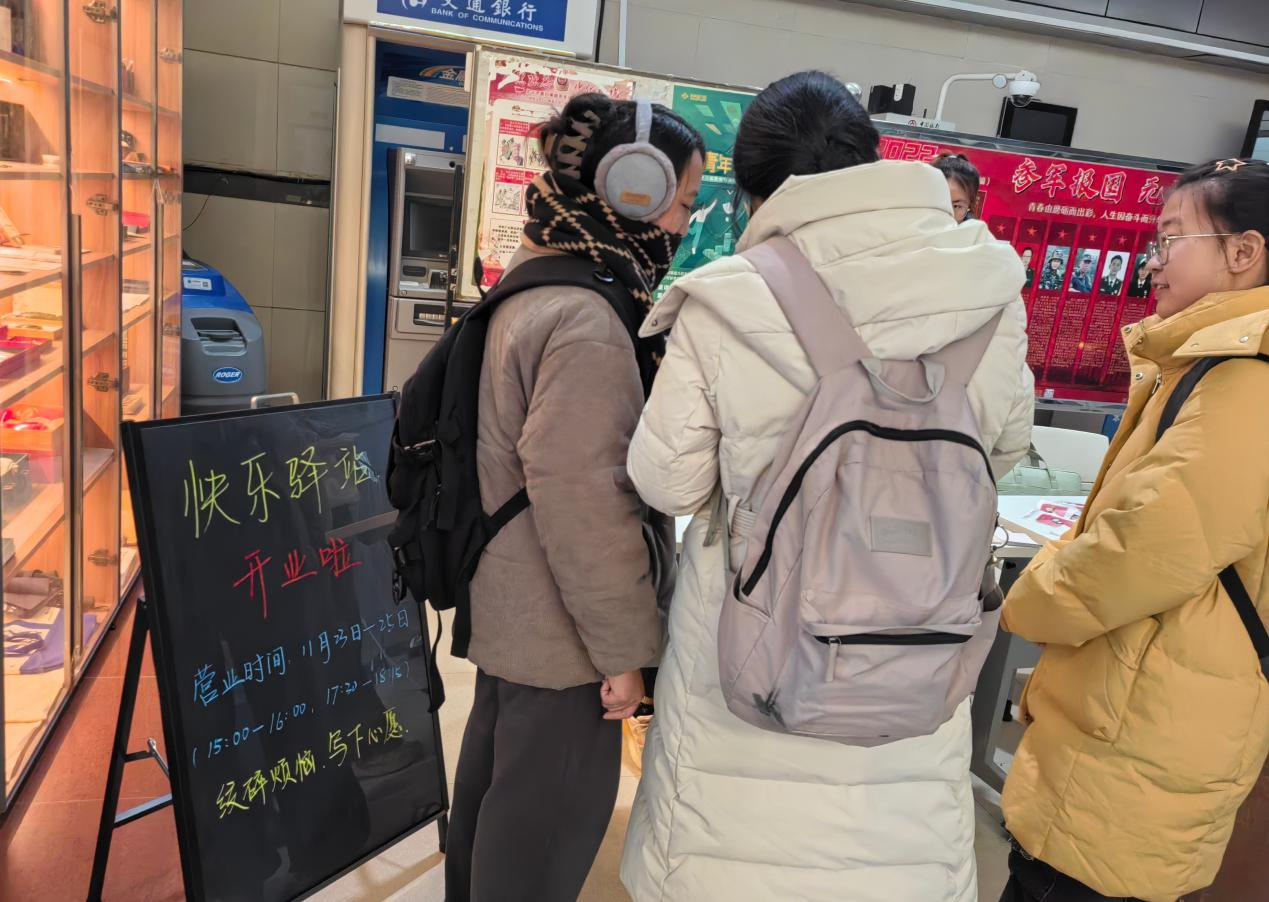 为帮助同学们释放压力,缓解焦虑,坦然地面对负面情绪,学会做情绪的主人,收获快乐的大学时光,太阳集团tyc33455于11月27日至11月30日在和平校区科学讲堂开展快乐驿站活动。