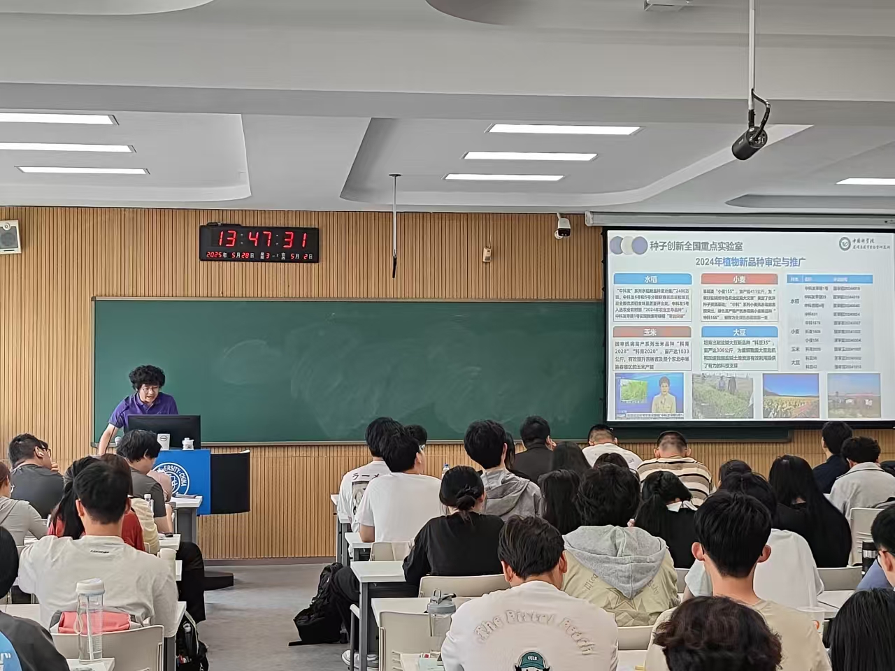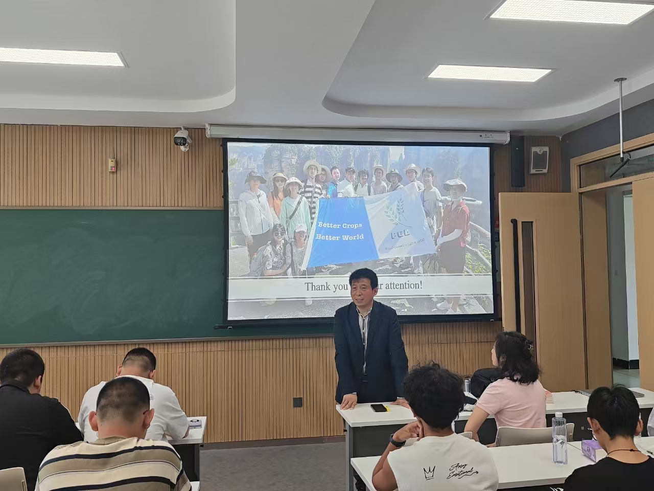 在随后的《利用统计基因组学进行农业适应性研究》专题报告中,鲁非深入浅出地阐述了如何运用基因组学前沿技术解析作物适应机制,并着重强调了该研究在保障国家粮食安全、服务农业强国战略的核心科技支撑作用。其深厚的学术功底和心系农业的情怀,深深感染了在场师生。