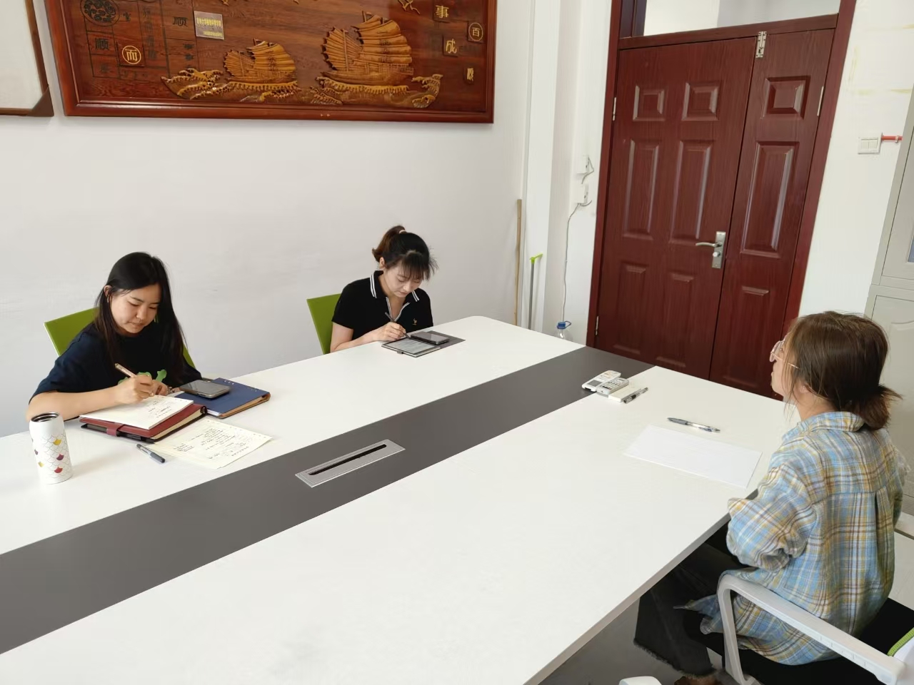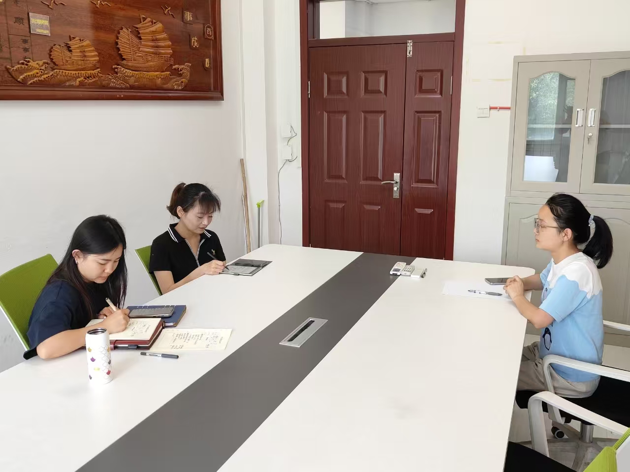 谈话中,老师们深入倾听毕业生在岗位选择、薪资预期、深造与就业抉择等方面的具体困惑与挑战,细致掌握其心理状态与职业规划。立足当前就业形势,结合公司往届成功案例,精准对标每位员工的专业能力、个人优势和职业兴趣,进行深度剖析与研判。从精准职业定位、拓展行业信息渠道,到务实调整求职心态与策略,提出了具针对性和可操作性的解决方案,力求“一人一策”见实效。