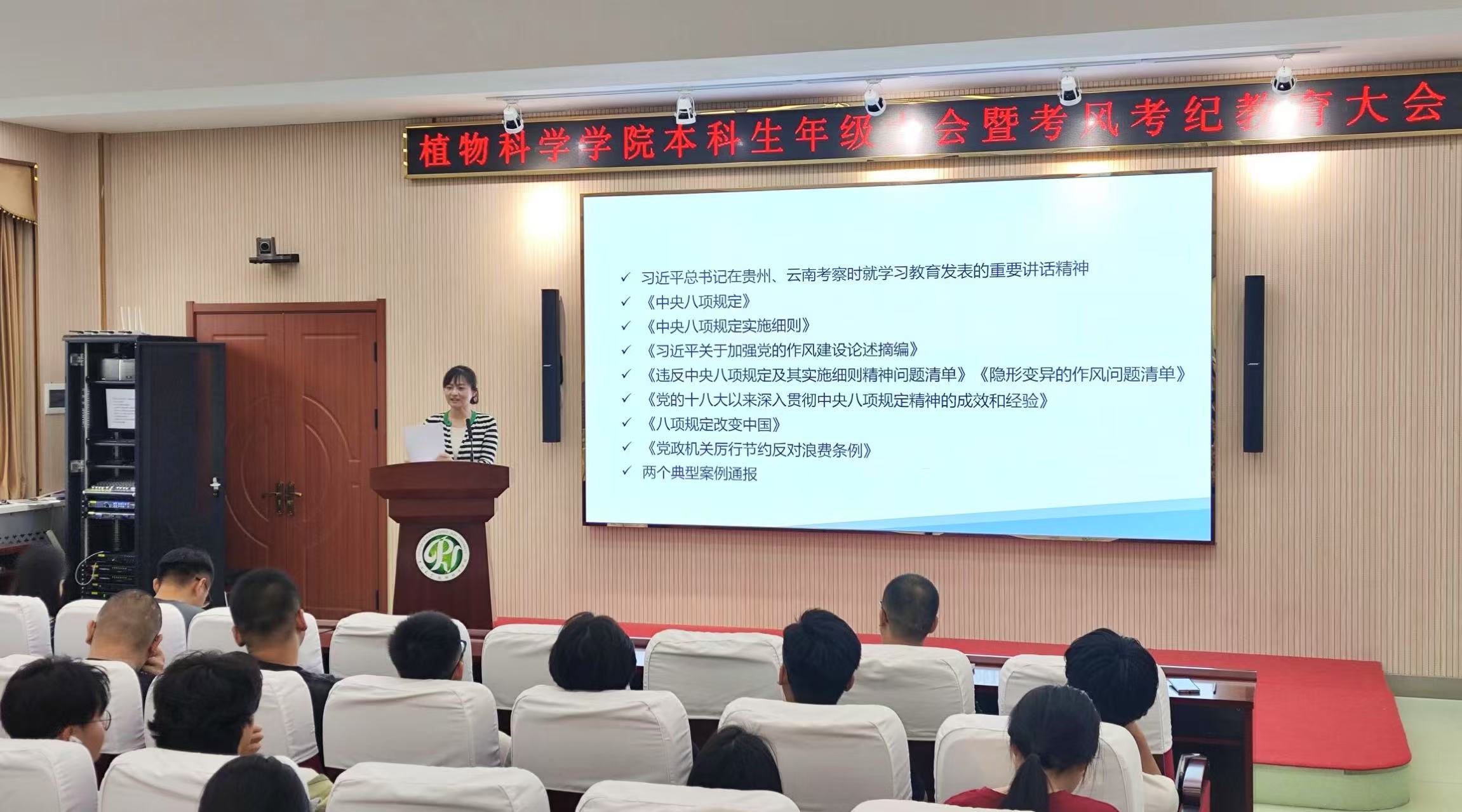 郑蕊以本科生的诚信与监督权责为主题展开,诚信首先是严格的自我约束,同时也需要有效的他人监督,两者权责统一。目前,员工党员须高标准参与到深入贯彻中央八项规定精神学习教育活动中,发挥表率作用;全体同学有权监督身边党员的学习情况及师生行为规范。公司通过严禁违规吃喝等影响公平的行为、畅通举报渠道(邮箱、电话)等,坚决保障员工正当权益不受侵害。希望同学们期末考试后,公司开展的公司发展建议征集活动中真诚建议、踊跃发言。